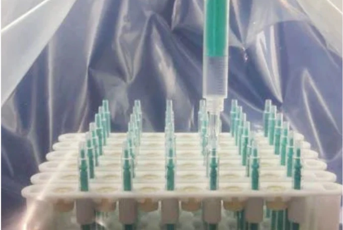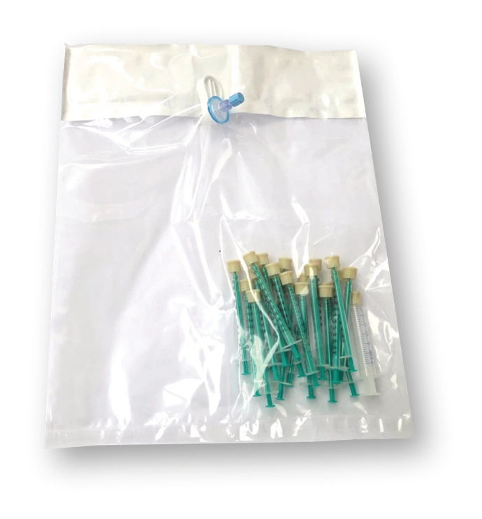 Dispense solution through the 0.22 micron sterilizing filter into the enclosed terminally sterilized bottles within the kit. Cap bottles prior to opening kit.
